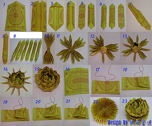 正統折蓮花時上面花朵的部份是18張折成36花瓣、底座為36張折成72片,共為108瓣為吉。